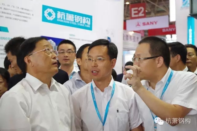 在住博會(huì)期間,國家住房和城鄉(xiāng)建設(shè)部部長陳政高,副部長王寧及易軍相繼視察了杭蕭鋼構(gòu)展區(qū)。