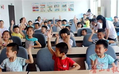 “小候鳥們”在“假日學校”的課堂上踴躍舉手發(fā)言