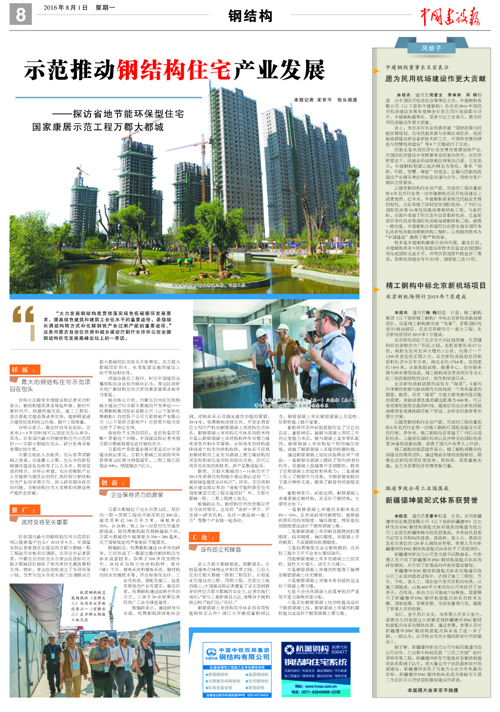 《中國建設(shè)報》2016年8月1日08版“鋼結(jié)構(gòu)”?報道?