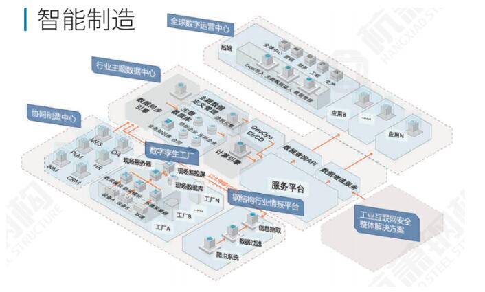 同時,加快“未來工廠平臺建設(shè)腳步,構(gòu)建工業(yè)互聯(lián)網(wǎng)工廠端生產(chǎn)數(shù)字化管理系統(tǒng)。通過信息化手段重構(gòu)生產(chǎn)組織模式,對內(nèi)實現(xiàn)數(shù)字化管理和資源優(yōu)化配置,對外提供接單和產(chǎn)能數(shù)字化接口,逐步形成以鋼結(jié)構(gòu)產(chǎn)業(yè)大腦為調(diào)度核心的網(wǎng)絡(luò)協(xié)同化制造生態(tài)圈。