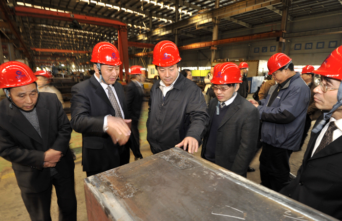 國(guó)家住房和城鄉(xiāng)建設(shè)部、省建設(shè)廳的有關(guān)領(lǐng)導(dǎo)和專家在杭蕭鋼構(gòu)生產(chǎn)基地參觀