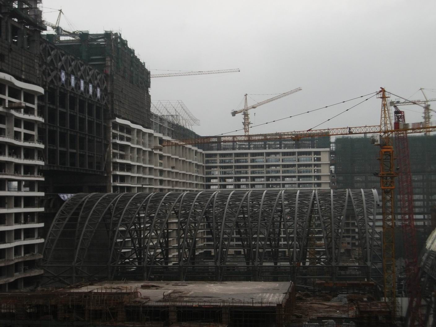 ??? 5區(qū)入口門廳管桁架的順利吊裝完成,標志著成都新世紀環(huán)球中心鋼結(jié)構(gòu)項目又一個新的記錄的誕生。