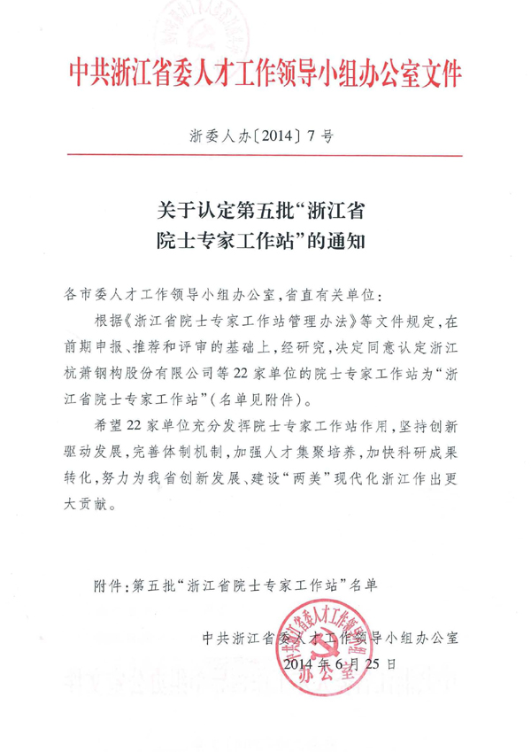 近日,中共浙江省委人才工作領(lǐng)導(dǎo)小組根據(jù)《浙江省院士專家專家工作站管理辦法》等文件,研究決定,同意認定浙江杭蕭鋼構(gòu)股份有限公司等22家單位的院士專家工作站為“浙江省院士專家工作站”。