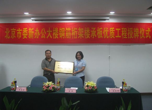 ??? 儀式最后,史志強(qiáng)先生和王金蘭女士分別接受北京市委基建辦和北京城建集團(tuán)的頒獎(jiǎng)。