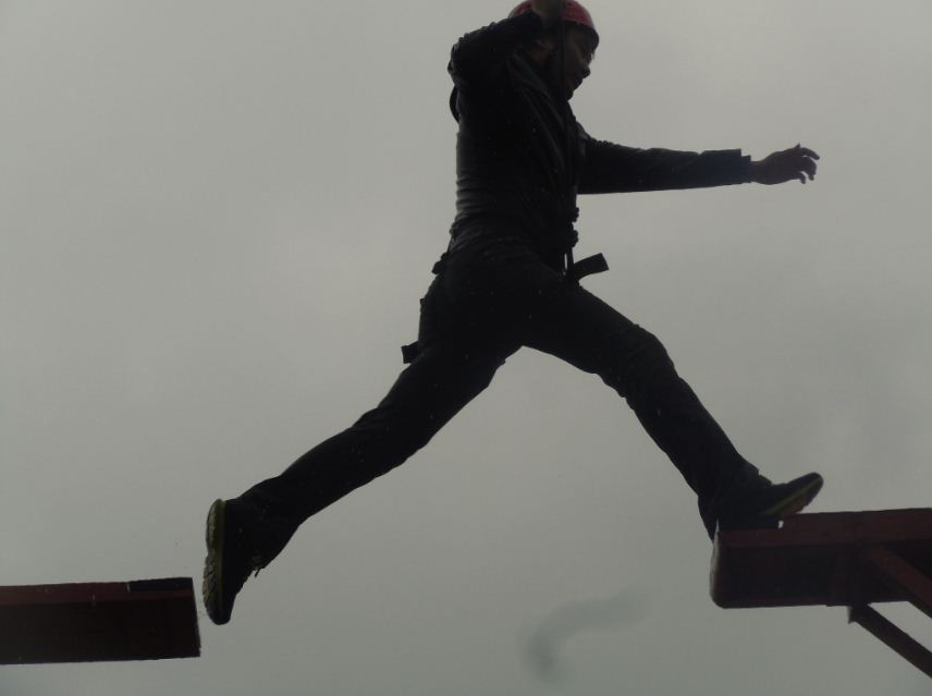 ??? 8米高空斷橋更多的是個人挑戰(zhàn)的項目。要求隊員克服內(nèi)心的恐懼去挑戰(zhàn)自己的舒適區(qū)。人都喜歡在舒適區(qū)中呆著,都不愿爬到七八米的高空去挑戰(zhàn)斷橋,但是舒適區(qū)是不利于個人發(fā)展的。所以要鼓勵人到發(fā)展區(qū)去體驗突破自我的感覺,當(dāng)然隨后帶來的成功的愉悅感和成就感是最讓人心動的。這種成就的感覺要成為每個人追求成功的動力,真正找到自己想要的。