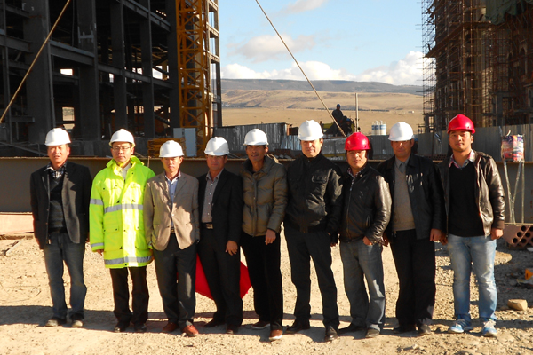 華凌集團(tuán)工程處處長左鳳寶(左四)、副處長袁先政(左二)、現(xiàn)場項(xiàng)目經(jīng)理李建民(左五)、總工程師葉家權(quán)(右四)、現(xiàn)場工程師趙勇章(左三)及杭蕭鋼構(gòu)現(xiàn)場項(xiàng)目經(jīng)理劉勇(右三)等在項(xiàng)目現(xiàn)場合影。