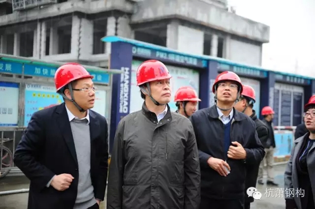 陳宜明總工一行首先蒞臨由杭蕭鋼構(gòu)承建的我國在建規(guī)模最大的鋼結(jié)構(gòu)保障房項(xiàng)目——錢江世紀(jì)城人才專項(xiàng)用房,實(shí)地參觀了杭蕭鋼構(gòu)鋼管束組合剪力墻結(jié)構(gòu)住宅體系的施工現(xiàn)場。