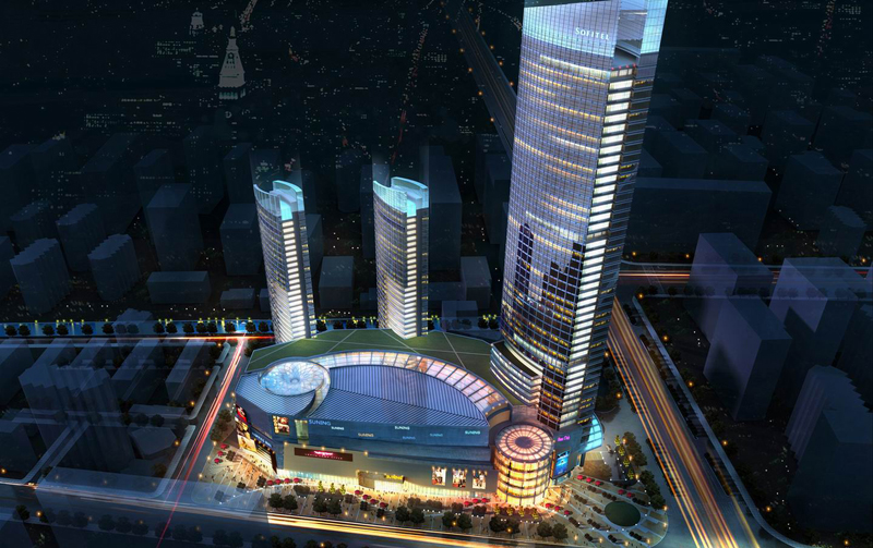 連云港蘇寧廣場(chǎng)工程位于連云港商業(yè)的核心位置——新浦商圈,周邊交通便利,擁有絕佳景觀視野,主題定位為電器旗艦店、頂級(jí)購物中心、五星級(jí)索菲特酒店、高檔住宅、酒店式公寓。本工程地下三層、地上最高41層,由3 幢塔樓和商業(yè)裙樓組成,項(xiàng)目總建筑面積約22萬平方米,高度200米,建成后將成為連云港市中心地區(qū)乃至蘇北沿海規(guī)模最大、業(yè)態(tài)最全、檔次最高的標(biāo)志性建筑。